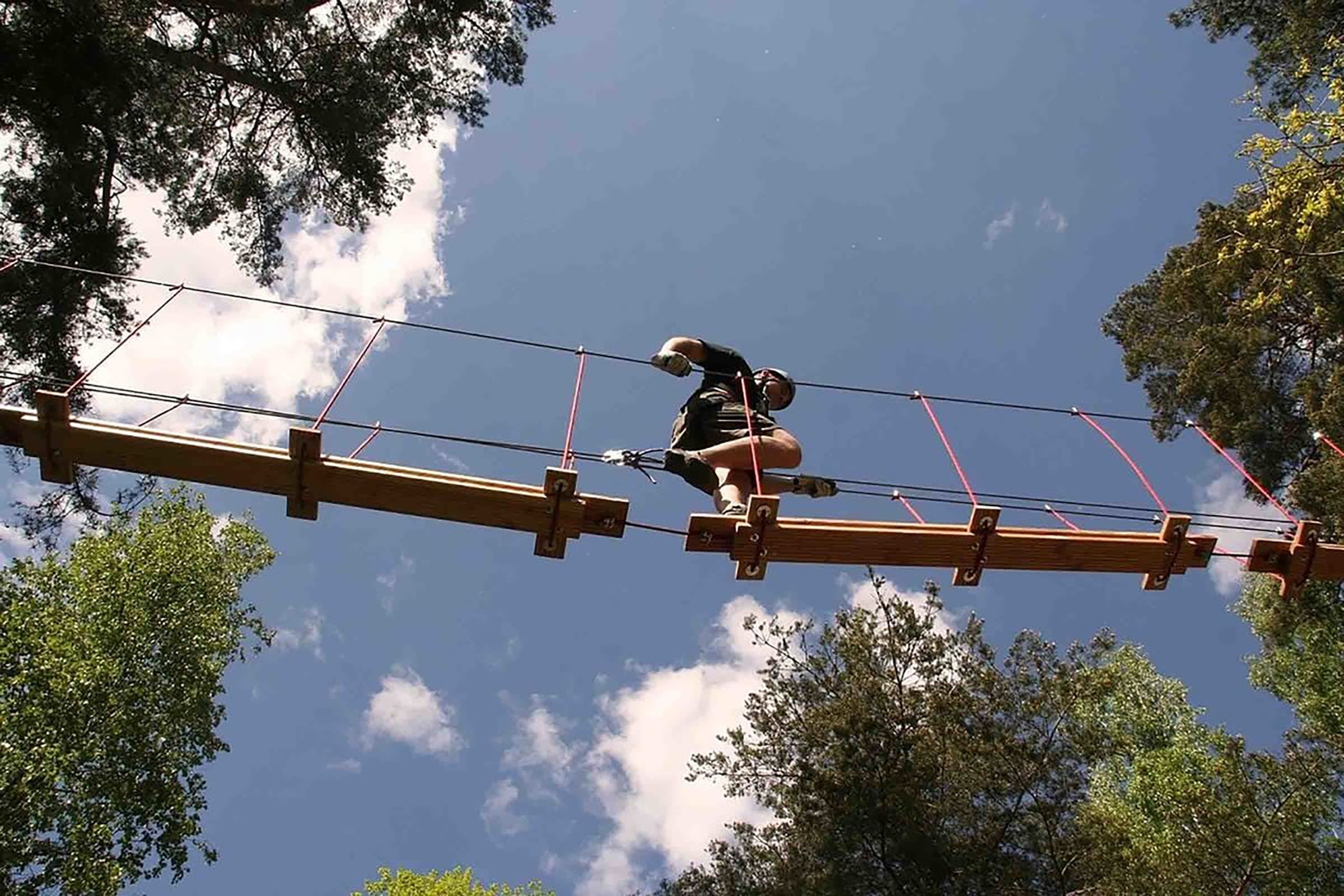 Här i Ängelholm hittar du en stor äventyrspark med 6 banor upp till 15 meter över marken. När du ankommer till äventyrsbanorna blir du mött av en instruktör som ger dig en säkerhetsgenomgång och lånar ut utrustning som du behöver för att kunna genomföra äventyrsbanorna.Banorna har olika svårighetsgrader vilket ger dig möjlighet att välja hur utmanande du vågar vara. Det är otroligt roligt att gå äventyrsbanan och den gör dig starkare mentalt och fysiskt.